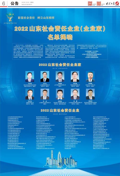 “2022山東社會(huì)責(zé)任企業(yè)(企業(yè)家)”推選活動(dòng),經(jīng)資料賦分、網(wǎng)絡(luò)投票、初審?fù)镀?、專家終審、媒體公示等程序,全省共有81家企業(yè)獲選“2022山東社會(huì)責(zé)任企業(yè)”,10名企業(yè)家上榜“2022山東社會(huì)責(zé)任企業(yè)家”。